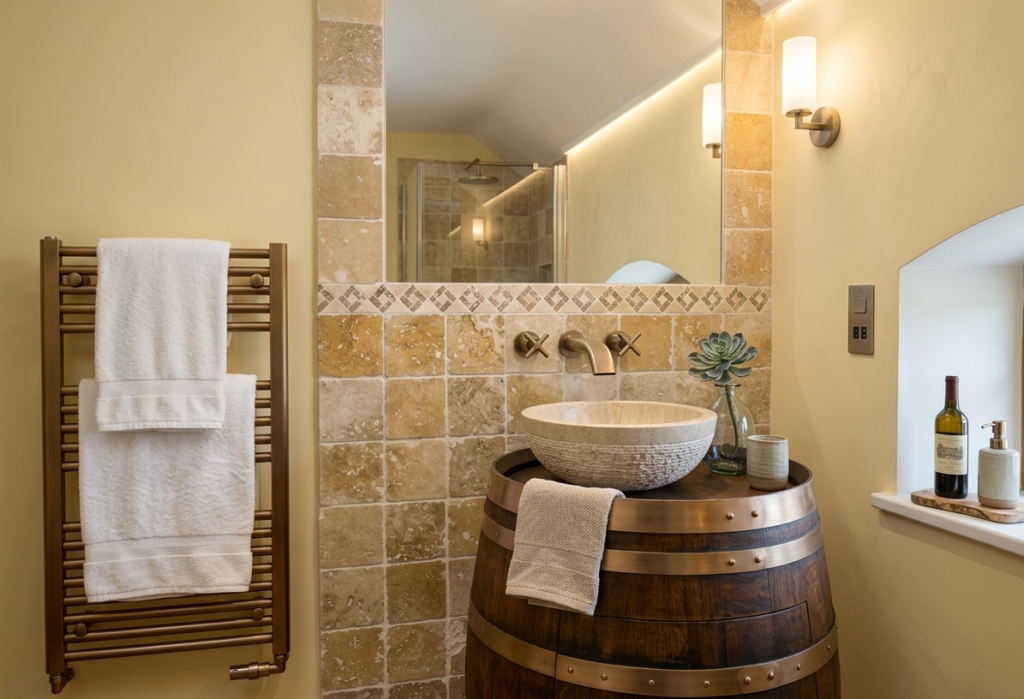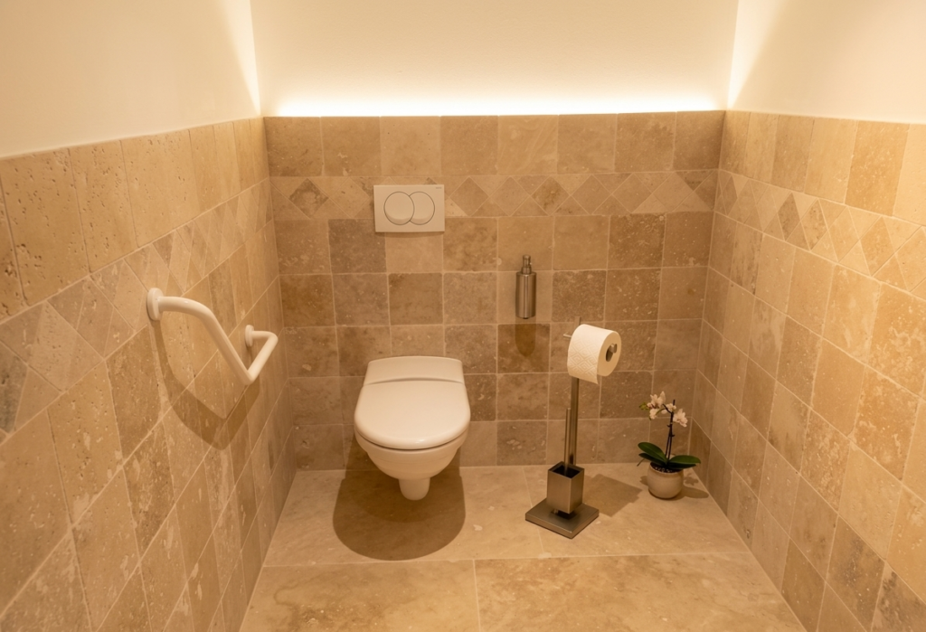 WC en travertin naturel avec frise décorative